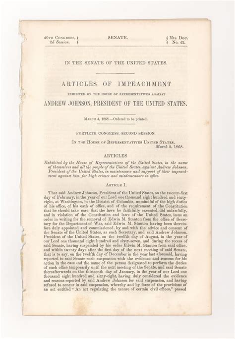 Articles Of Impeachment. An article of impeachment is a documented statement which specifies the charges to be tried in. Web this document consists of a single instrument issued from the appropriate legislative body detailing the specific.