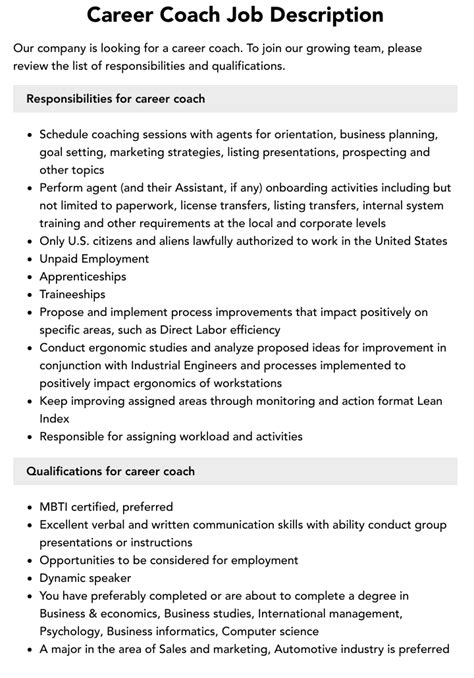 Business Coach Job Description Velvet Jobs