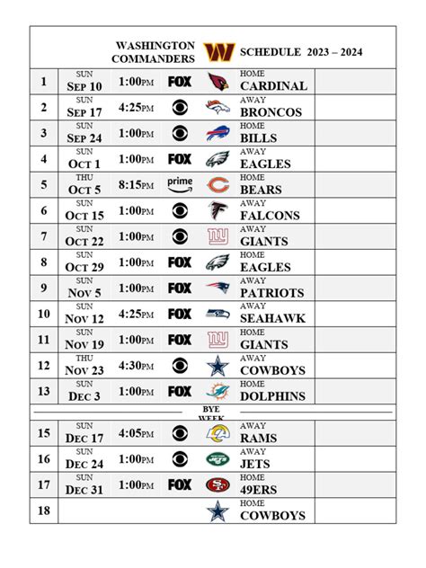 Commanders Schedule 2023. Web the nfl will reveal the schedule for the 2023 season on nfl network at 8 p.m. Web espn has the full 2023 washington commanders regular season nfl schedule.