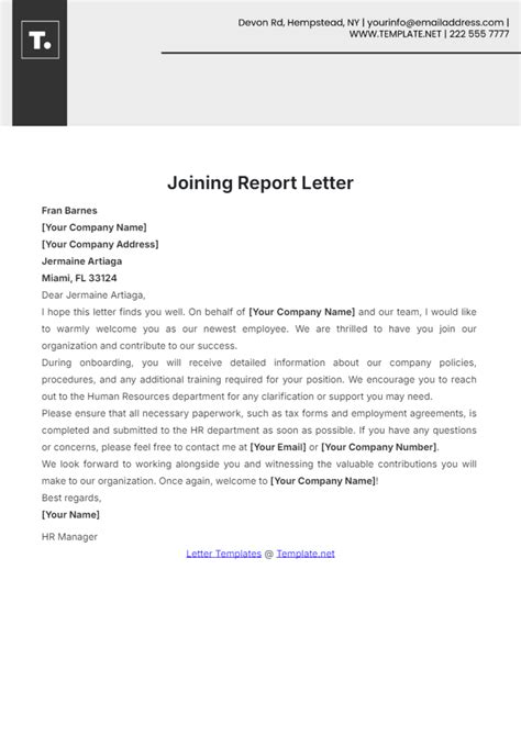Web a joining report letter is a formal letter from the candidate to the employer accepting the job offer and. Web a joining letter is a confirmation letter addressed to an employer by the candidate who accepts a job offer. Web a template for a joining report letter that can be downloaded in ms word, google docs, and apple pages formats. Web a joining letter is a document you can send after receiving a job offer from a company to confirm the terms of your.