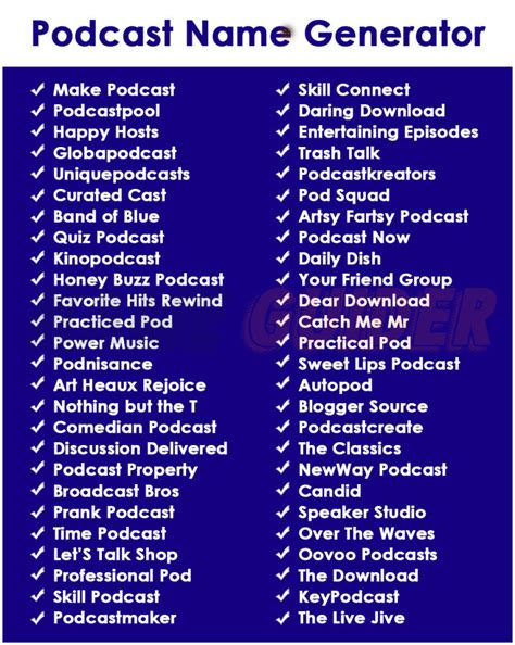 Podcast Name Generator. Web learn how to come up with a unique and memorable podcast name that suits your show's style, approach, and audience. Web ausha's podcast name generator helps you come up with hundreds of podcast name ideas, for free.
