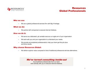 Resources Global Professionals. Web resources global professionals (rgp) is a public company that offers project, taskforce, and sitrick services in various.