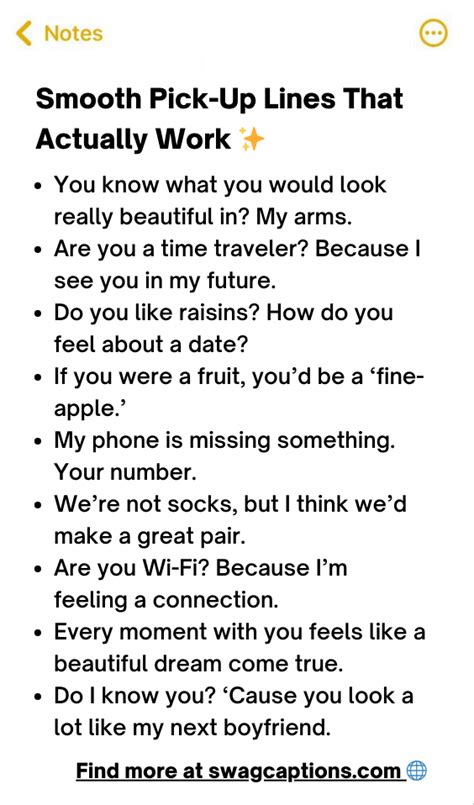 Smooth Pick Up Lines. Web looking for the best pickup lines to break the ice, spark meaningful conversations, and get a date? Web looking for some flirty and fun pickup lines to start a memorable conversation with someone new?
