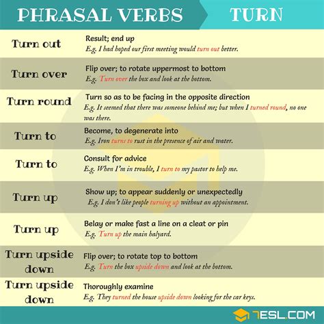 Commonly used phrasal verbs with TURN with meaning and examples in English. Common Phrasal Verbs