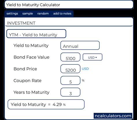 Web you can calculate the yield to maturity of a bond in three steps: Web calculate the current yield and yield to maturity of a bond based on the current price, the face value, the number of years, and. Web learn how to find the yield to maturity (ytm) of a bond using the ytm formula and the factors that affect it. Enter the bond's face value,. Web learn how to calculate the yield to maturity (ytm) of a bond, a metric that represents the expected annual rate. Check the face value, bond price, annual coupon rate,. Web use this calculator to find the annual return of a bond that's held until maturity.